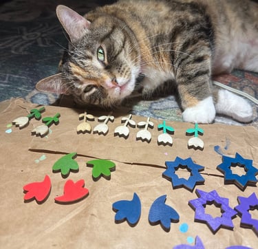 My work is expressed through many mediums including illustration, painting, wood cutting, print-making, clay, and soon maybe sewing? I also have my eye on working with stained glass (it looks SO fun) so... of course this list will continue to expand.