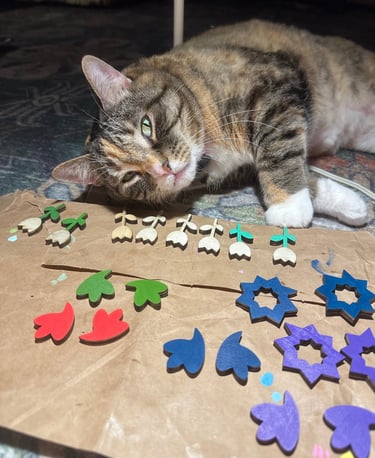 My artwork is playful with a focus on bold colors and shapes. I love making things because it gives me the opportunity to both feed my many curiosities, and highlight all the very nice things in this beautiful world.